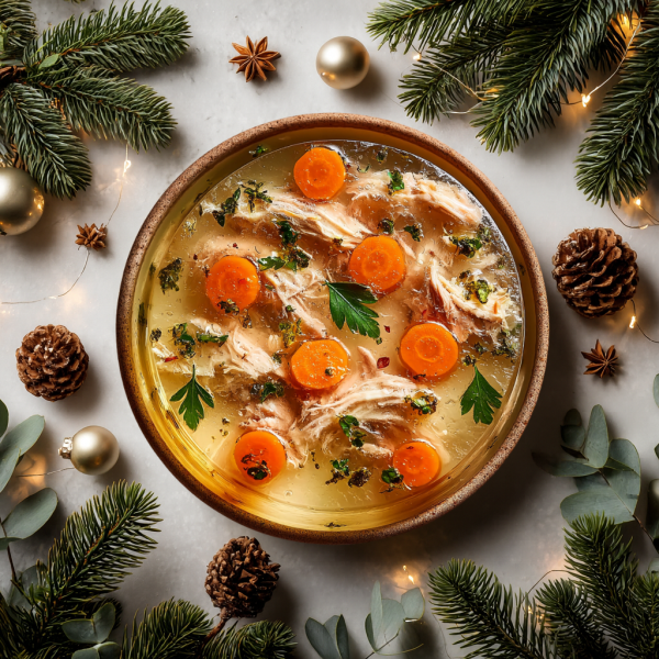 Ingrediente: carne de curcan, usturoi, morcov, țelină, păstârnac, foi de dafin, sare, piper.