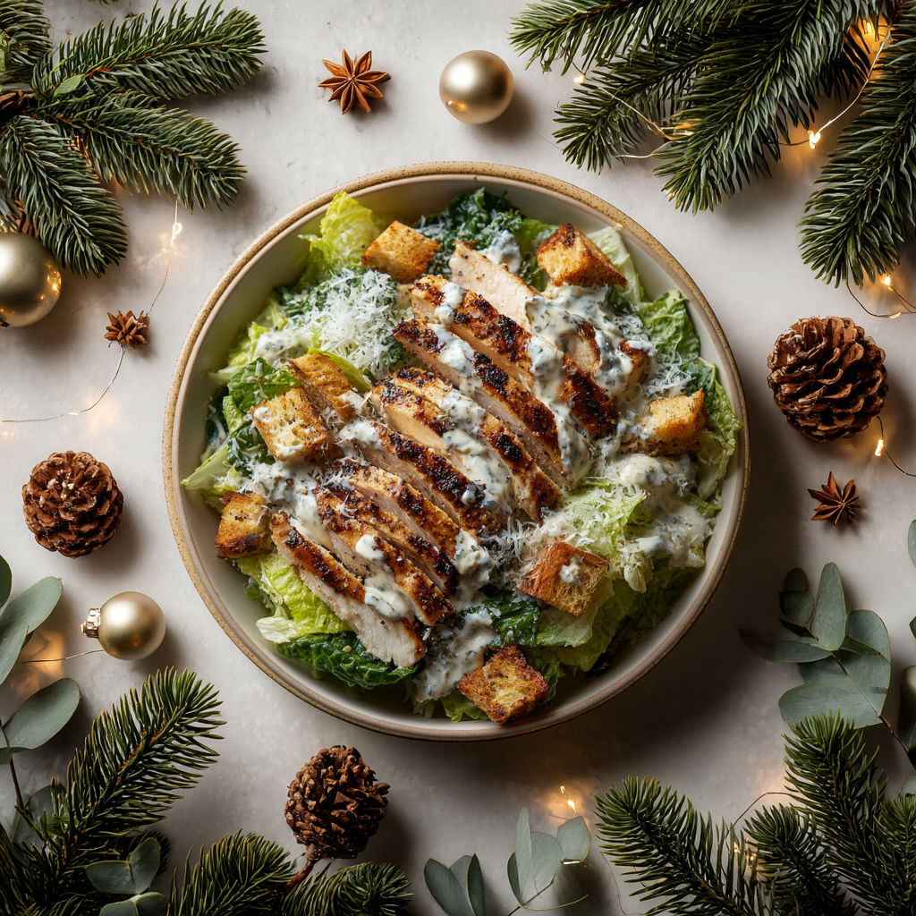 O salată iconică, inspirată din bucătăria internațională, preparată cu mix de salate proaspete, piept de pui fraged, crutoane crocante, parmezan maturat și dressing Caesar cremos, realizat după rețetă clasică. Perfectă ca fel principal ușor sau aperitiv generos pentru masa de sărbători.